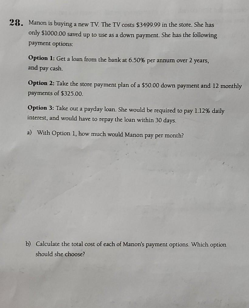 Solved 28 Manon Is Buying A New Tv The Tv Costs 3499 99 Chegg Com